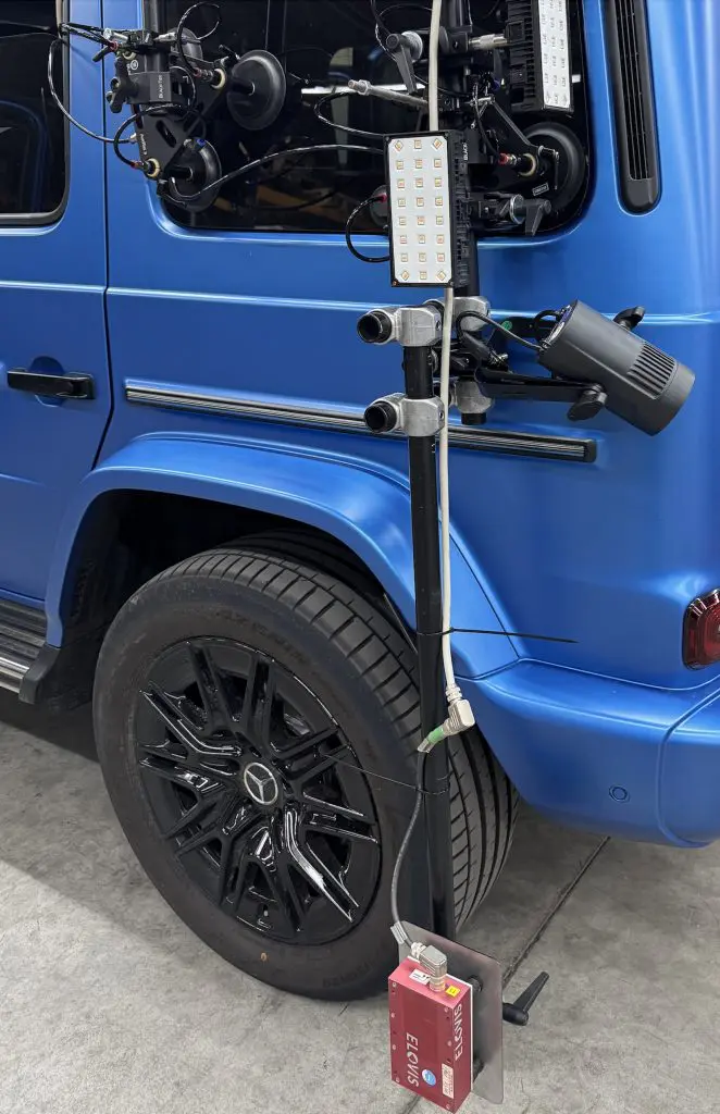 Bild 1: Laser-Encoder µSPEED-SMART am Messfahrzeug vor den Rekord-Läufern