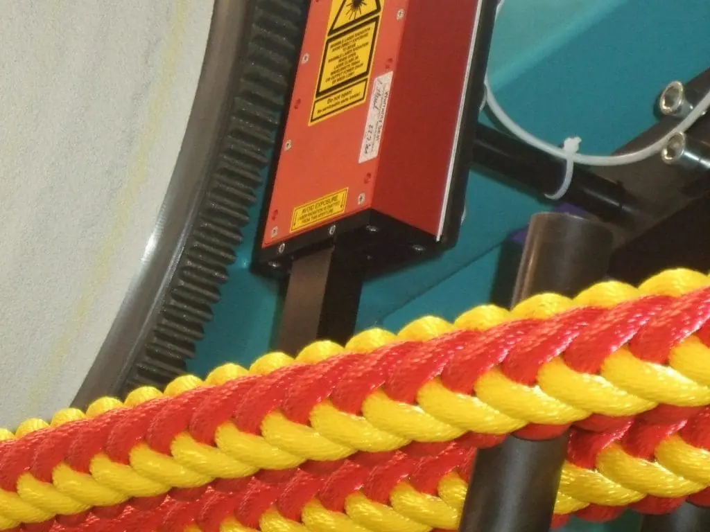 Measurement of rope lengths in the stranding machine by means of non-contact laser-encoders. Accurate measurement despite uneven and coarsely stranded or braided surfaces. Measuring diameters from 1mm to 250mm (or more). The measurement with the ELOVIS laser-encoder is almost independent of material, permanently accurate and can not be beat with touching methods.