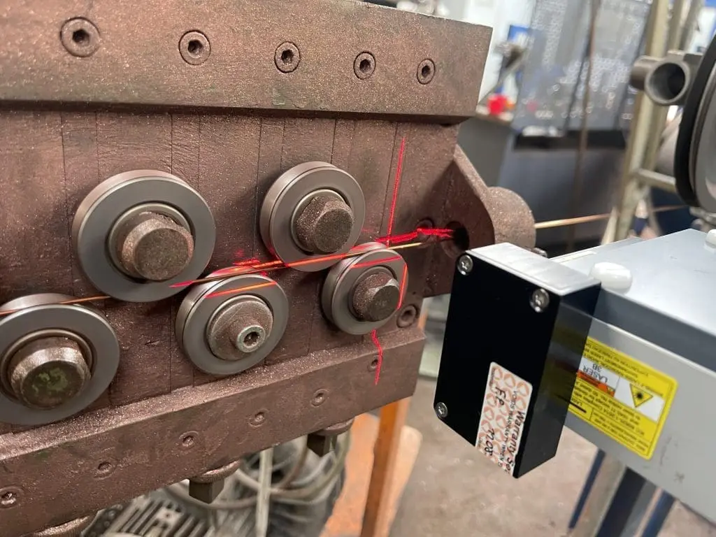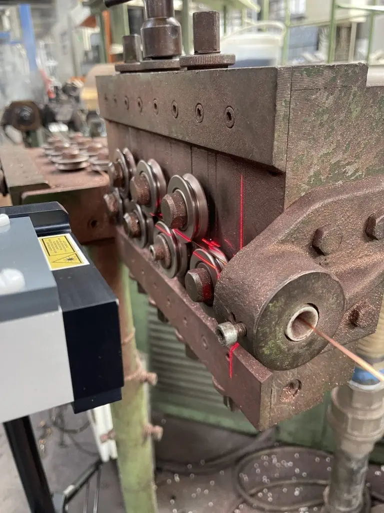 The length measurement of wire is carried out in different applications. For example, already in production in drawing machines, during spooling or rewinding as well as during lacquering or finishing, i.e. length cutting. Due to the raw material prices, the sales lengths must be adhered to as precisely as possible. Maximum accuracy and reliability can be achieved with the µSPEED non-contact laser encoder systems. All materials and surface qualities are measured, starting from a diameter of approx. 0.2 mm.