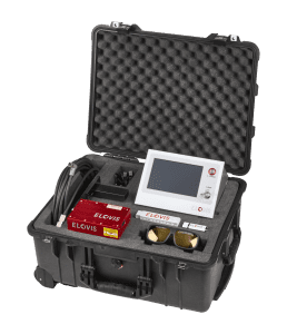 Sistemas de medición de longitud y velocidad de los codificadores láser Comprobando la precisión de la medición de un contador de sistema para cuerdas con el sensor láser portátil µSPEED |